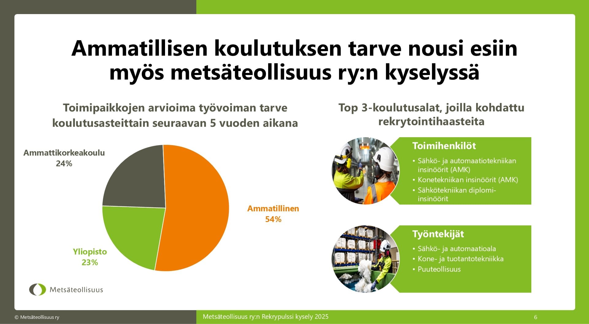 Metsäteollisuuden osaamistarpeet ovat kehittyneet merkittävästi 2000-luvun aikana. Yleiset mielikuvat tuotantolaitoksista ja työtehtävien yksinkertaisuudesta ovat vanhanaikaisia. Todellisuudessa metsäteollisuudessa työskennellään teknologisen kehityksen kärjessä uusiutuvan raaka-aineen parissa.