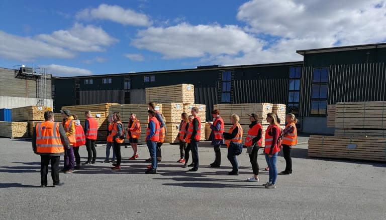 Kolmipäiväisen reissumme ensimmäinen päivä keskittyi pääasiassa tarkastelemaan metsiä metsäteollisuuden ja puunkäytön näkökulmasta. Päivän aikana saimme seurata eri kohteisiin tehtyjen vierailuiden kautta puun matkaa aina metsästä hakkuutyömaalta sahalle ja siitä edelleen eri prosessien kautta valmiiksi tuotteeksi, kuten esimerkiksi puutaloksi. Tätä näkökulmaa olivat päivän aikana esille tuomassa mielenkiintoisten vierailujen siivittämänä Sotkamon metsänhoitoyhdistyksen hakkuutyömaa, Kuhmo oy:n saha, Crosslamin CLT-tehdas ja Elementtisampon talotehdas sekä Tuupalan puukoulu.